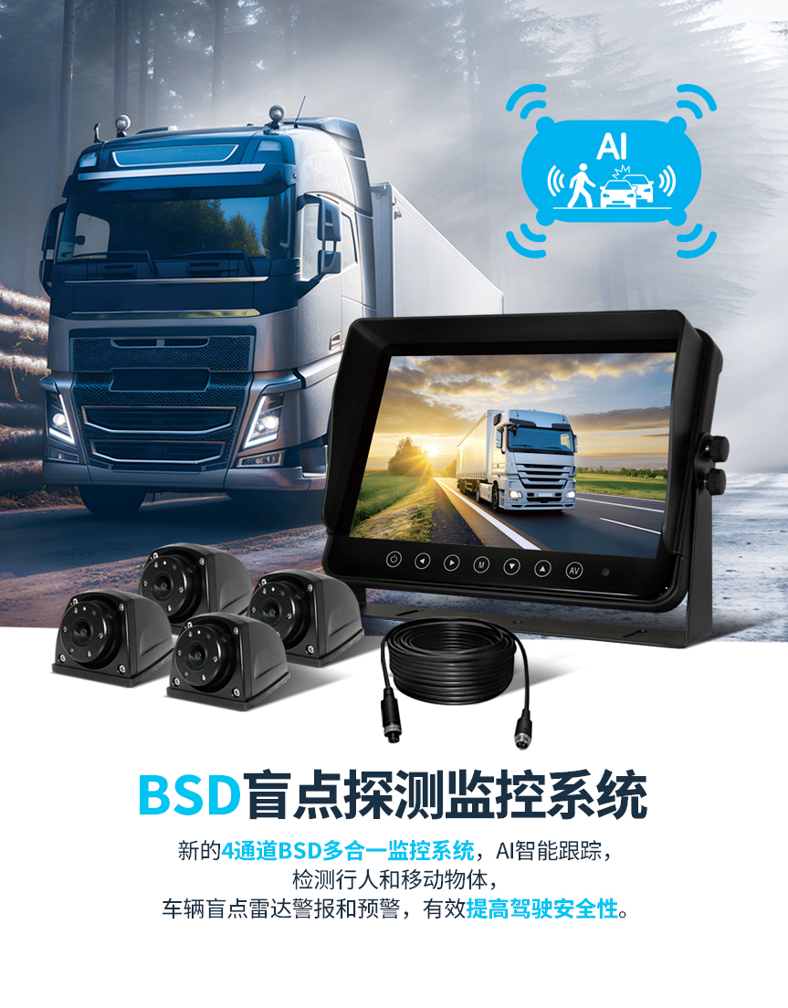 • 7英寸 AI BSD行人車輛檢測預警系統 (SF-7100AHD)